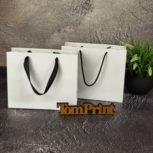Білий матовий крейдований пакет ШxВxГ 280x230x120 мм, 200 г/м2, підворот під ручки та дно укріплені картоном