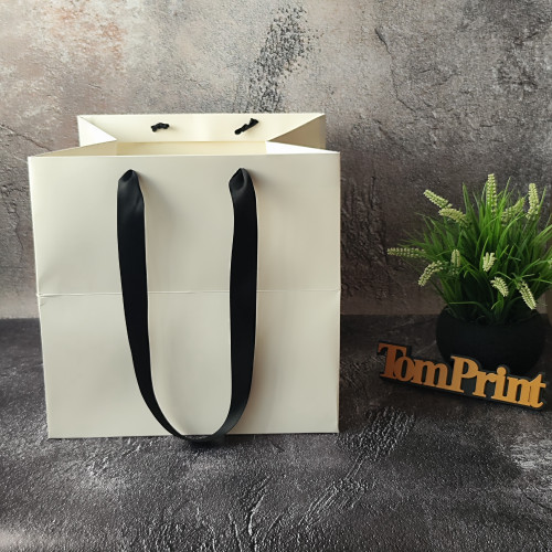 Білий матовий картонний пакет ШxВxГ 300x300x290 мм, 215 г/м2, дно укріплене картоном
