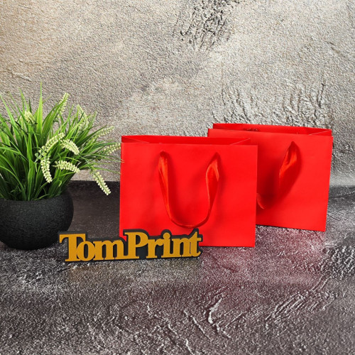 Червоний матовий крейдований пакет ШxВxГ 200x150x100 мм, 170 г/м2, підворот під ручки та дно укріплені картоном