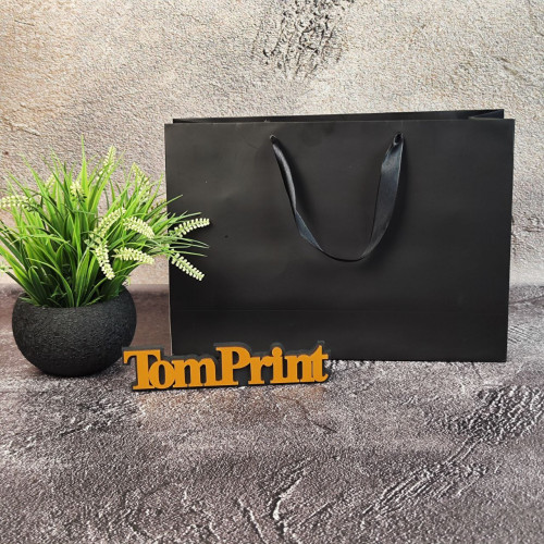 Чорний матовий картонний пакет ШxВxГ 340x240x100 мм, 215 г/м2, дно укріплене картоном