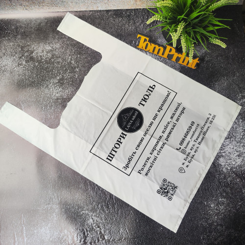 Пакет майка білий 30x50см, 50мкм, ПНТ, боковий фалець 7см